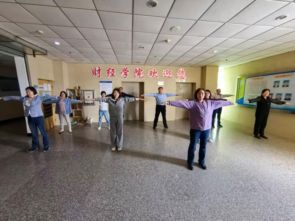 为进一步提升教职工身体素质和身心健康水平, 营造凝心聚力、奋发向上的工作氛围。财经学院分工会结合实际情况,利用上午大课间组织教师开展“工间操”健身活动,将体育运动融入日常工作生活。