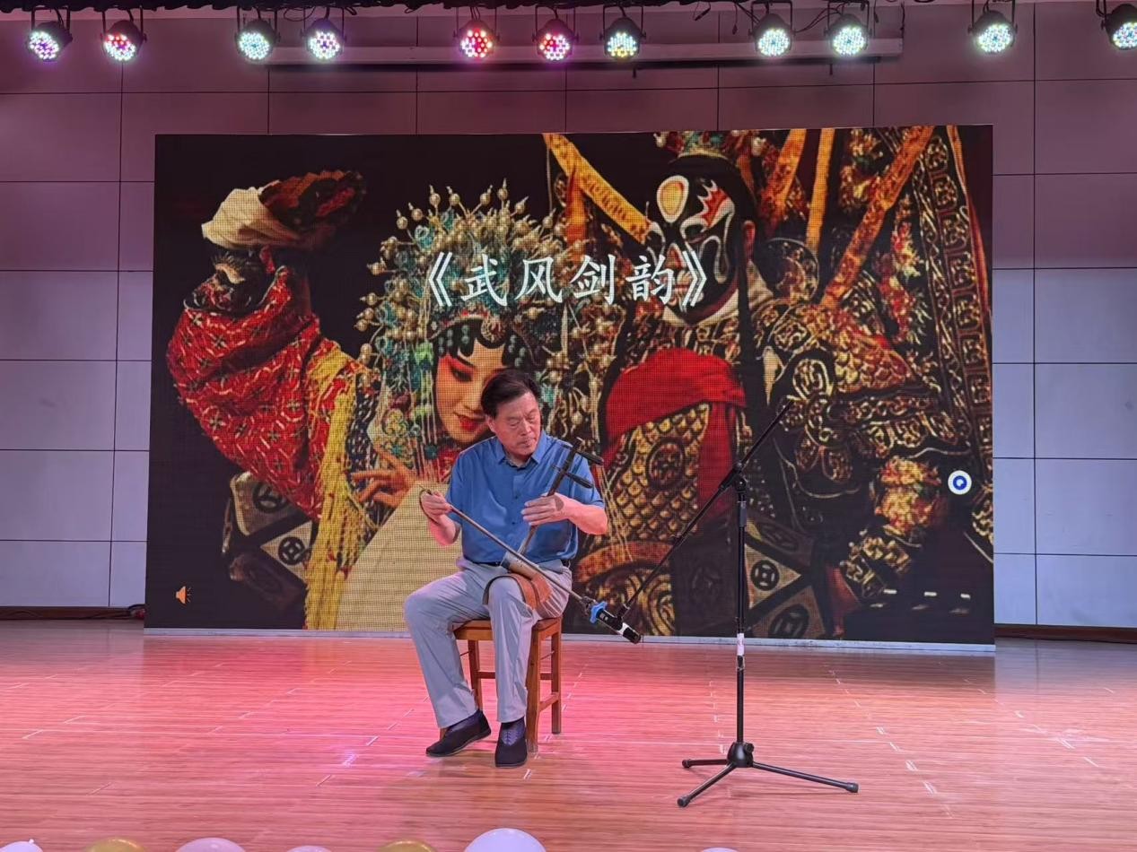 晚会现场,全国振兴京剧功勋奖得主、海内外知名琴师边发京老师演绎京胡独奏《武风剑韵》,弦音激越,荡气回肠;河北省京剧票友协会副会长、省票协演出培训基地主任兼北戴河西古城京剧团团长张海琴老师随后登台,一曲《金钟响》字正腔圆,尽显中华传统艺术的深厚底蕴与永恒魅力。