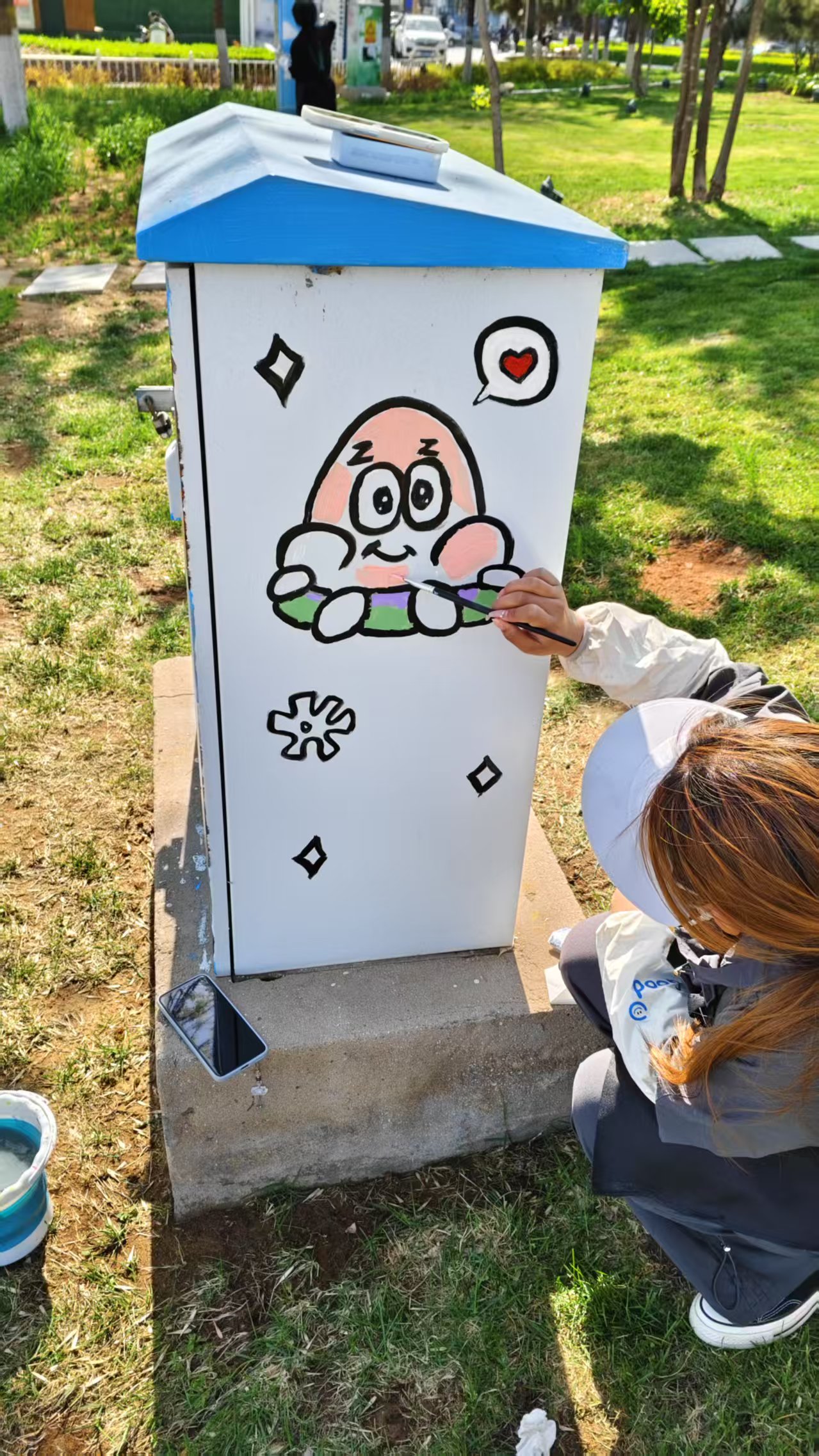 活动期间,团队以艺术彩绘为主要形式开展环境美化工作。配电箱改造组别出心裁,以森林生态为主题,用灵动线条与斑斓色彩勾勒出自然生态图案,历时两个阶段的持续创作,最终完成沿线全部配电箱的艺术改造;树木美化组则巧妙融入海洋元素,在完成最后一批树干彩绘后,为整条海滨长廊画上完美句点,绘制的海绵宝宝、派大星等经典卡通形象,让童趣满满的海滨艺术长廊完整呈现。