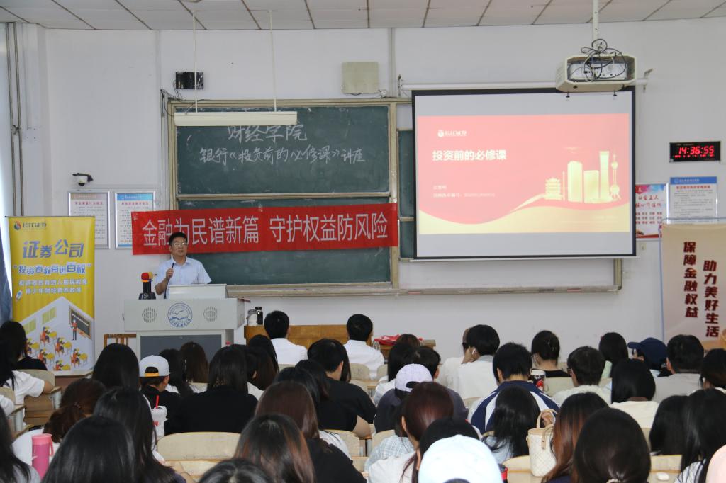 近日,一场以"投资前的必修课"为主题的专题讲座成功举行。本次讲座旨在帮助同学们掌握科学投资方法,提升金融风险防范意识。中国工商银行秦梓航经理和长江证券投资顾问、2005级校友崔黎明联袂主讲,围绕理性投资与防诈骗两大主题展开精彩分享。我院财务会计教育专业和财务管理专业学生近150余人参加了讲座。