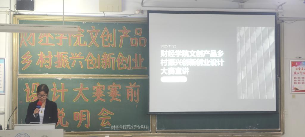 为激发学生创新创业热情,推动专业知识与乡村振兴需求深度融合,财经学院特举办文创产品乡村振兴创新创业设计大赛。大赛设置赛前说明会、组队报名、创新创业设计、作品提交及评选等完整环节。近日,何烁仟同学已对赛事流程进行详细解读,李思琪同学则围绕创业计划书撰写要点开展专题指导,为参赛团队提供全方位赛前支持。