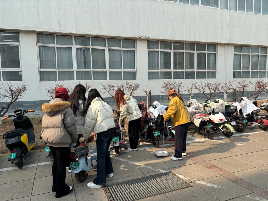本次团日活动以校园实践为核心,推动雷锋精神从理论认知转化为实际行动。同学们以宿舍为单位分组,奔赴校园A楼、B楼前开展志愿服务:一组同学手持清洁工具,对校园道路、绿化带内的垃圾进行全面清理,用双手守护校园环境整洁;另一组同学针对校园电动车乱停乱放问题,耐心整理、有序摆放,规范校园停车秩序。实践过程中,同学们分工协作、热情高涨,以实际行动诠释着雷锋精神中奉献、互助的核心内涵,成为校园里一道亮丽的青春风景线。