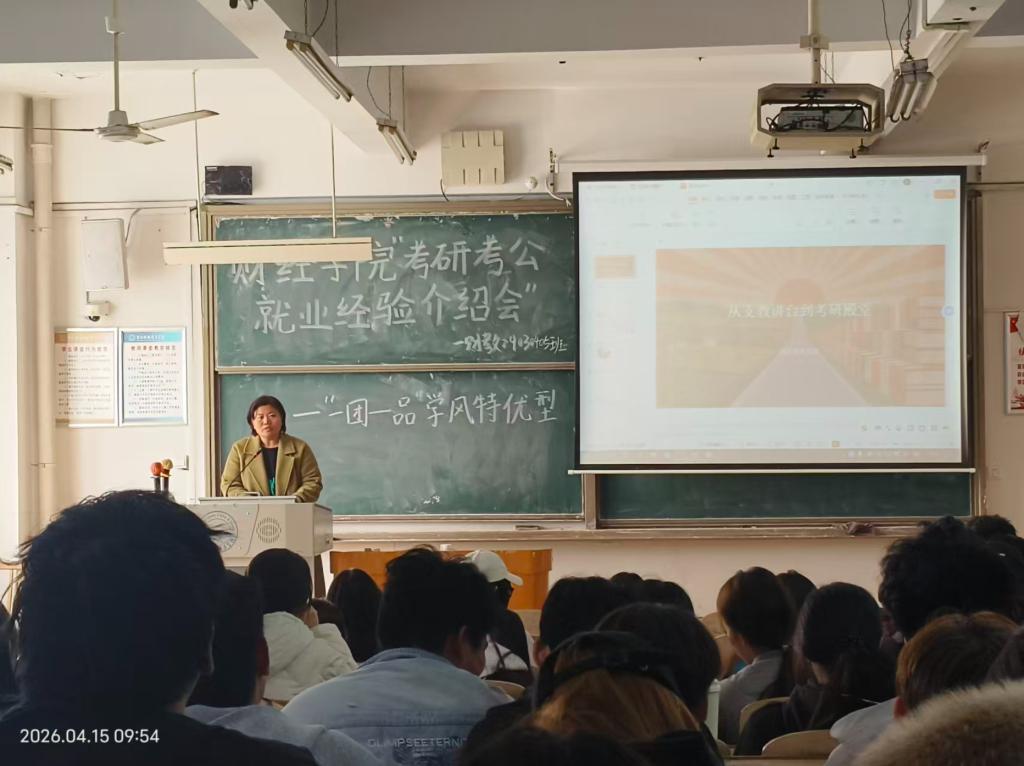 为进一步落实学院学风建设工作要求,助力青年学生科学规划学业与职业发展道路,破解考研、考公、就业过程中的困惑与难题,4月15日上午,河北科技师范学院财经学院财教2403、2404、2405班在A105教室联合举办考研考公就业经验介绍会。本次活动由辅导员肖艳老师牵头策划、全程指导,三个班级全体同学共同参与。