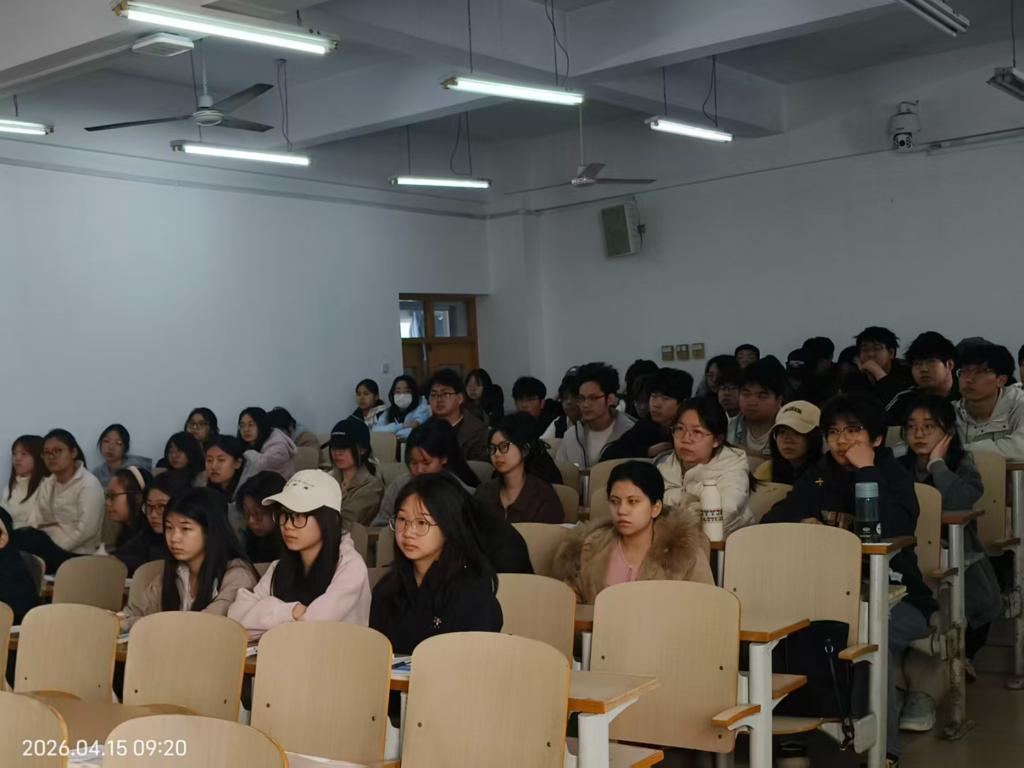 活动在庄重热烈的氛围中拉开帷幕。团支书首先向大家介绍了本次经验分享会的举办背景、活动目的与流程安排,指出在当前升学与就业竞争日趋激烈的形势下,精准获取备考技巧、求职经验对低年级同学至关重要,希望全体同学珍惜学习机会,认真聆听、积极思考,为未来发展做好充分准备。