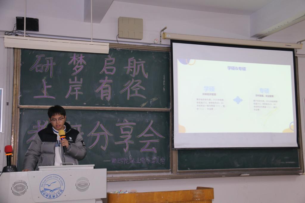 2025年11月19日,财经学院在A207教室举办“研梦启航,上岸有径”考研分享会。活动以考研经验交流为核心,旨在助力考研备考、拓展职业选择、推进就业指导,吸引了学院众多备考学子参与。
