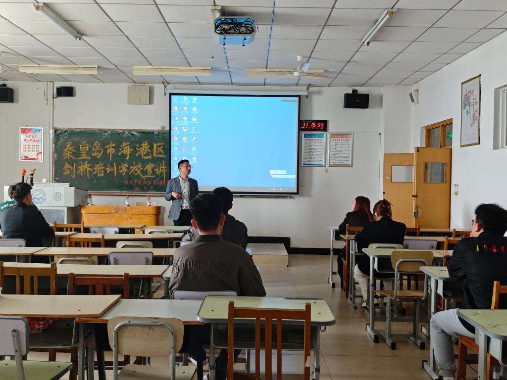 为搭建校企沟通桥梁,助力同学们明晰职业发展方向、拓宽就业渠道,近日,秦皇岛市海港区剑桥培训学校校园宣讲会在A503教室顺利举办。同学们满怀期待,希望通过本次宣讲深入了解行业动态与就业机遇,为自身未来的职业发展提前做好规划与铺垫。