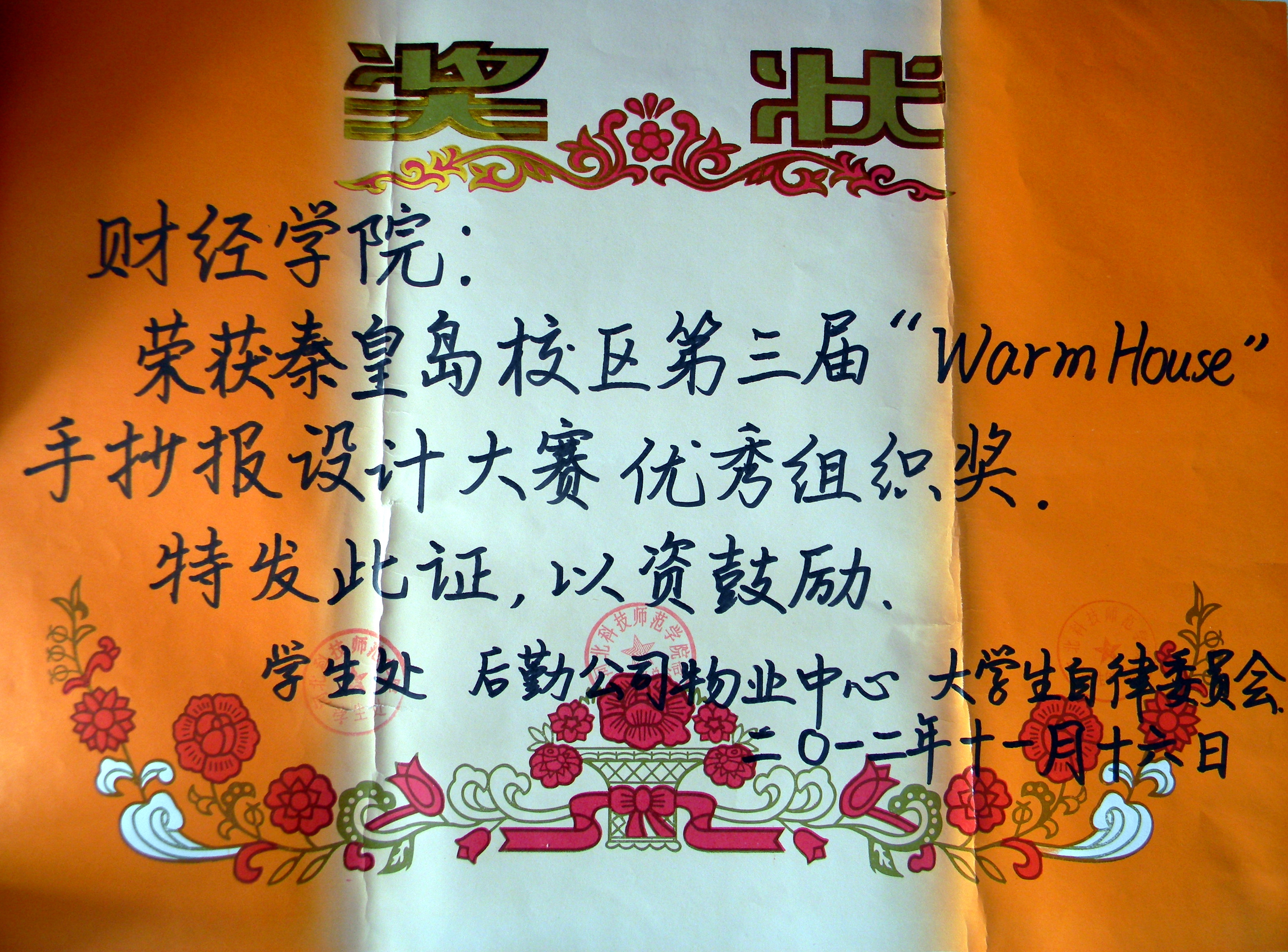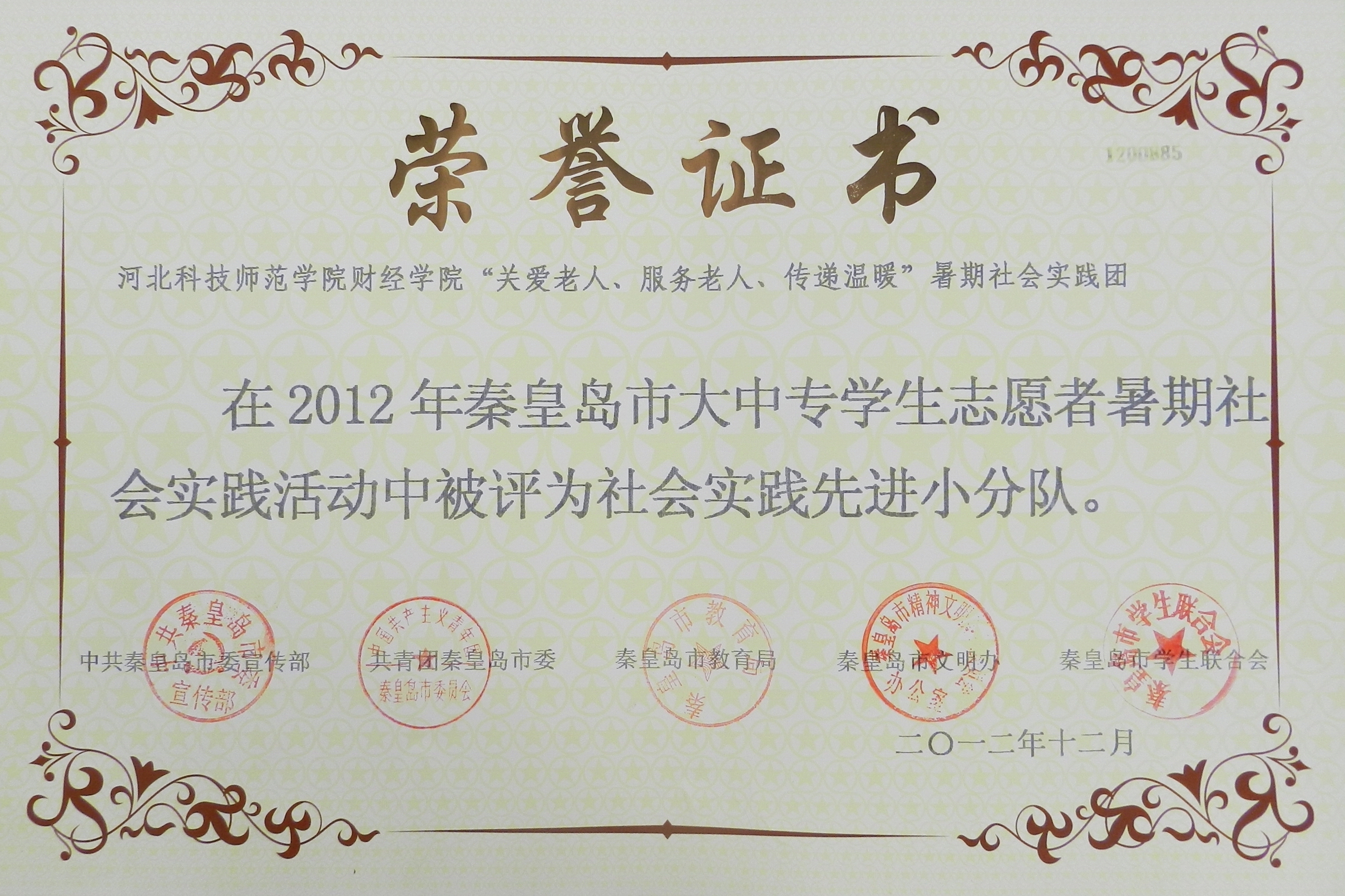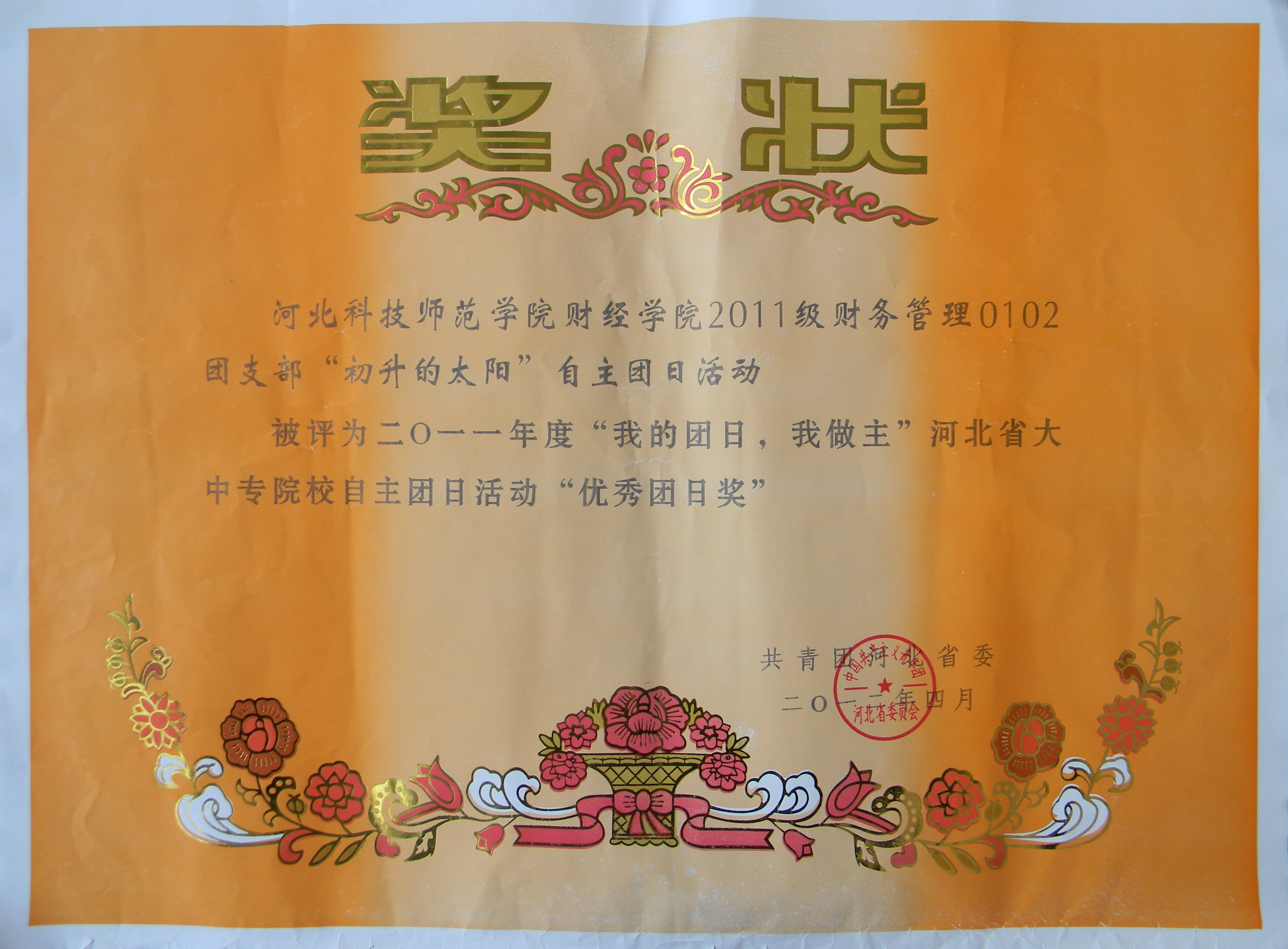 财务管理专业团支部荣获省团委2011年度“我的团日,我做主”河北省大中专院校自主团日活动“优秀团日奖”。 图为奖状[详细]